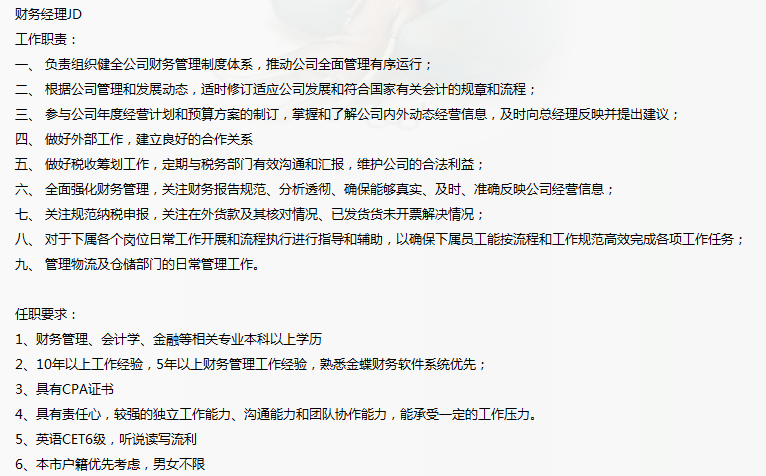 上市公司要个财务经理,薪资20-25k。