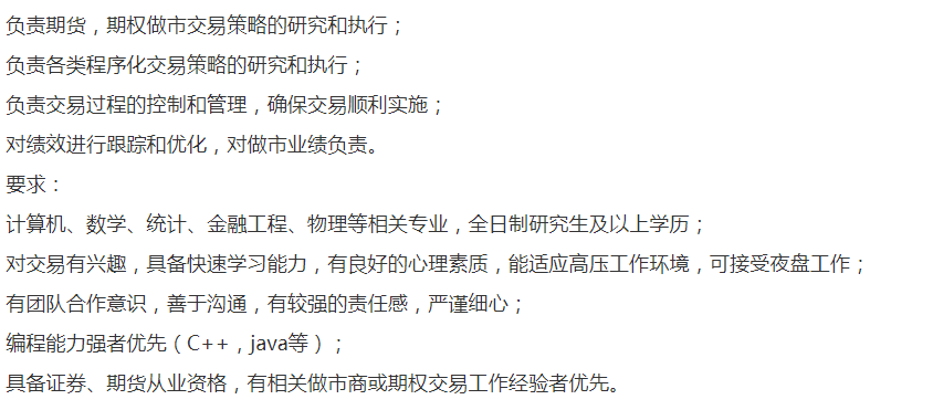 上市全牌照专业期货公司下属子公司需要一个期货交易员:全本,28以下,最好做过期货交易的,金融应届生也可以接受,每月大概一周夜班(在家),薪资8-10k,全额交金,补充公积金和商业险,年底1-6薪,4号线浦电路