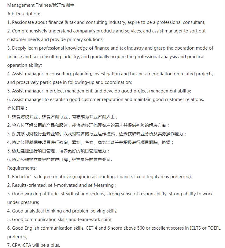 • 招聘企业:财税咨询公司
