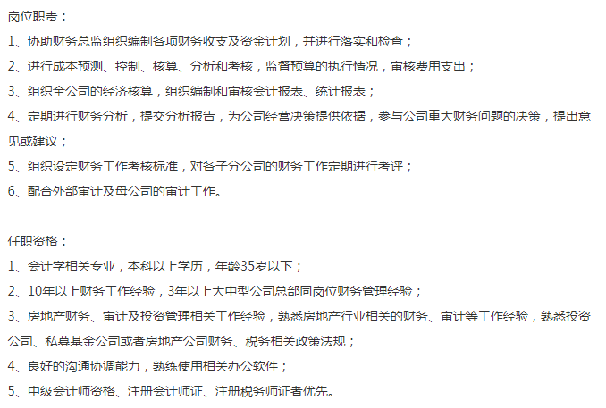 金融控股集团公司要财务经理 薪资20-25k 合并报表,财务分析比较强的 首选男生 地产行业经验首选,中级证书 3年以上大中型公司总部同岗位财务管理经验,2号线 淞虹路办公