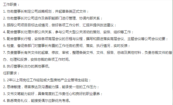 岗位【董事长助理】