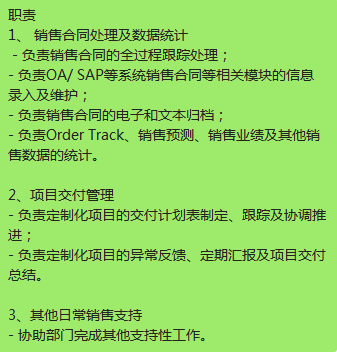 备注【 最好本科,大专也行。英文要简单交流,最好有2-3年工作经验,excel好些,希望要有制造业的销售支持经验(目前的公司最好是自己研发生产和销售的公司)】