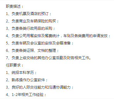 要求:全本学历+沟通协调能力佳,基本薪资6-6.5k +中午包餐+全额交金13薪+bouns(以往不低于15薪),地址:近6号线航津路
