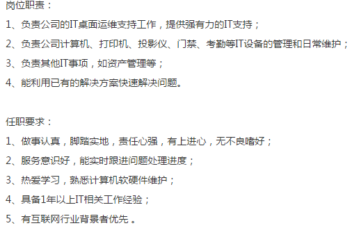 外资机械设备公司需要一名【it运维】大专学历即可 基本薪资6-8k+六险一金+年底bouns+包食宿 /或住房补贴 地址:近17号线赵巷