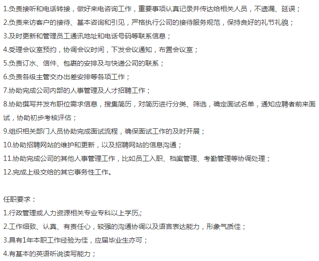 法资咨询公司要人事行政助理(兼前台),薪资6-8k,要求英语口语要基本沟通,灵活点的女生,有上进心,薪资结构 base pay*13+bonus,13天年假 五险一金全额,上班时间 9:30-6:30双休,11号线江苏路地铁站办公。