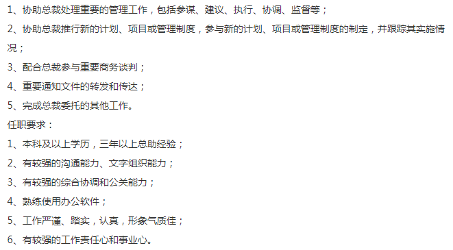 知名化妆品公司要一个总裁助理,要求全本或以上学历,三年以上总助经验,形象气质佳的小姐姐,薪资10-15k,额外补贴,福利多多,办公环境好,10号线紫藤路上班~