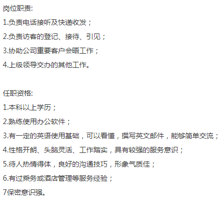 高科技集团公司要行政前台,长相要漂亮,身高162以上,最好本科学历,条件特别优秀者大专即可,热情,一定的英语口语,办公软件熟练,薪资13薪,6K—8K,五险一金全额,餐补500,上班地点:2号线广兰路