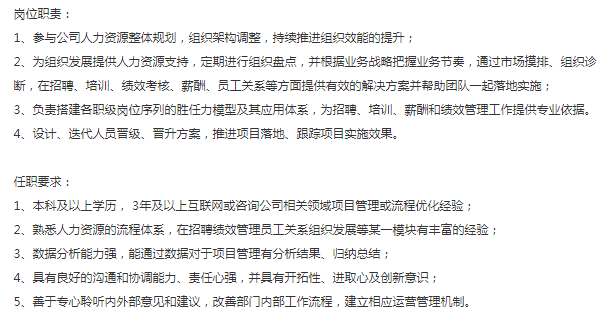 外资公司要OD组织发展,薪资15-25k,4年-7年工作经验的,做人力资源咨询的,或者厉害一点的猎头,六险二金,14薪,上班地点:9号线漕河泾。