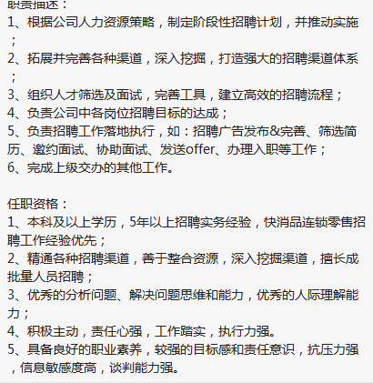 知名上市公司,上海陆家嘴上班,急招聘经理,薪资25k左右,5年及以上招聘经验,快消零售行业背景优先考虑。