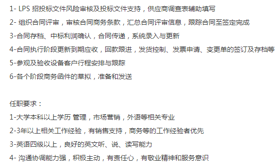 知名大型港资制药科技集团,客户均为世界领先制药公司,招商务专员,本科,英语好,设备、工程行业商务工作经验,合同评审、标书、数据支持、项目款项、订单等相关经验,薪资7-11k,全额交金,年底15薪,周末双休,有班车食堂,松江南站附近上班,在莘庄北广场有班车。