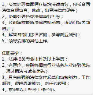 知名集团控股总部,急招法务主管,薪资10-15k,3年左右工作经验,男生。