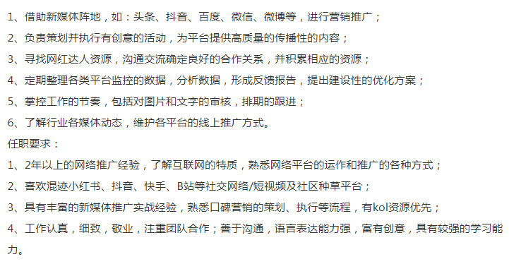 合资、快速消费品(食品、饮料、化妆品)要新媒体推广,