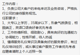 国企要个接待,应届生都可,薪资6K左右(各种补贴,五险一金全额,补充公积金,年底13-16不等,不加班,稳定性好),学历不限,7号线呼兰路