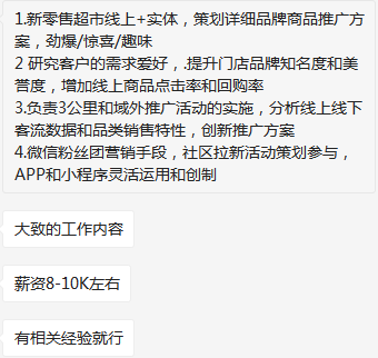 多元化集团公司,要个推广经理8-10K,有过零售、快消、广告经验优先,位置:青浦