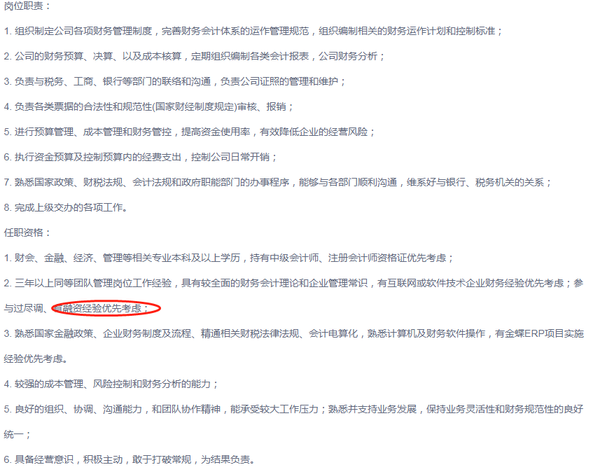 备注【本科学历,三年以上同等团队管理岗位工作经验,要有融资经验】