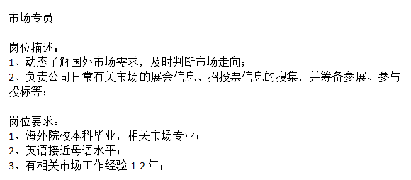 跨国集团公司要个市场专员,留学背景的女生,英语要流利交流,1年左右市场经验就行,薪资7-10k+年底2-3个月bonus+包午餐+各种福利,上班时间9-5点半,4号线浦东大道