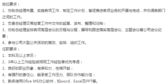 备注【女,本科或以上学历,2-3年总助经验,形象好。】