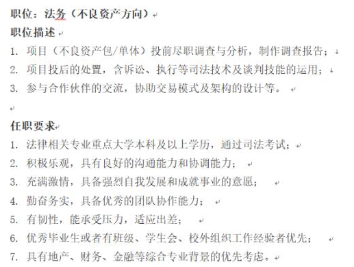 实力非常强的资产管理公司要法务,3年内工作经验,硕士应届都可以,要有律师资格证,华东政法大学优先,有出差,15-20w/年 +五险一金全额+补充医疗+其他补贴,地址:2号线娄山关路