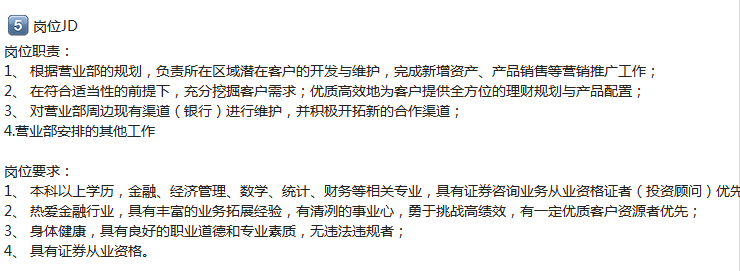 备注【本科学历,35以下,有证券从业资格证,有基金从业资格证加分,必须要有证券行业资源,2年左右相关工作经验 】