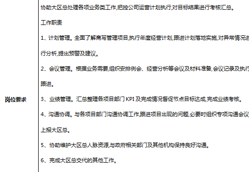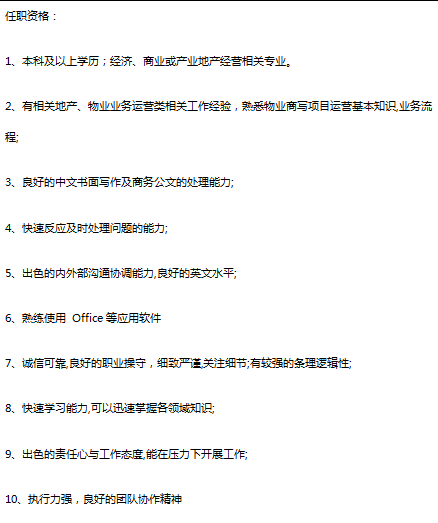 中国地产前三强之一旗下物业板块,招区域总经理助理,有商业或者物业或者地产背景优先,女生,PPT优秀,良好的中文书面写作及商务公文的处理能力,薪资10k左右+全额交金+补充商业险+13-14薪,上班地点:9号线漕河泾