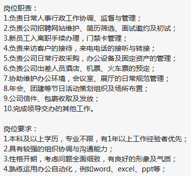 大型集团公司,业内排名领先,招行政人事专员,有招聘经验,1年以上经验,薪资6-8k+13薪,上班地点:9号线桂林路