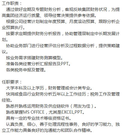 500强旗下快消品牌,急招财务分析候选人,薪资open,快消或食品行业财务分析五年以上工作经历,税务工作及管理经验。上海黄浦区上班