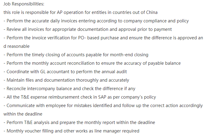 美资化工企业急招AP,月薪8k左右,有班车食堂,13月薪+年底奖金,五险一金+saving plan。要求要三年以上总账经验,外资背景最好。立信学校出来的也可以的。1号线莘庄附近工作