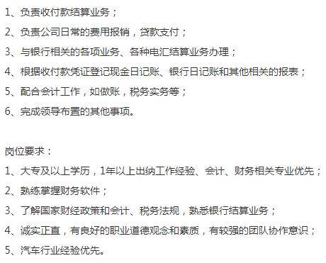 外资企业,要个出纳,薪资6-7k,五险一金全额,年底13薪,公司稳定,看中内部人员晋升机会,9号线金吉路上班