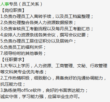 岗位【人事专员】