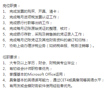 备注【专科或以上,财会专业,有初级证,男女不限】