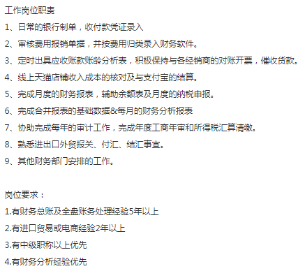 外资商贸公司要总账,女性,5年左右相关经验,有进口贸易或电商经验2年以上,薪资10-15K,10号线陕西南路办公